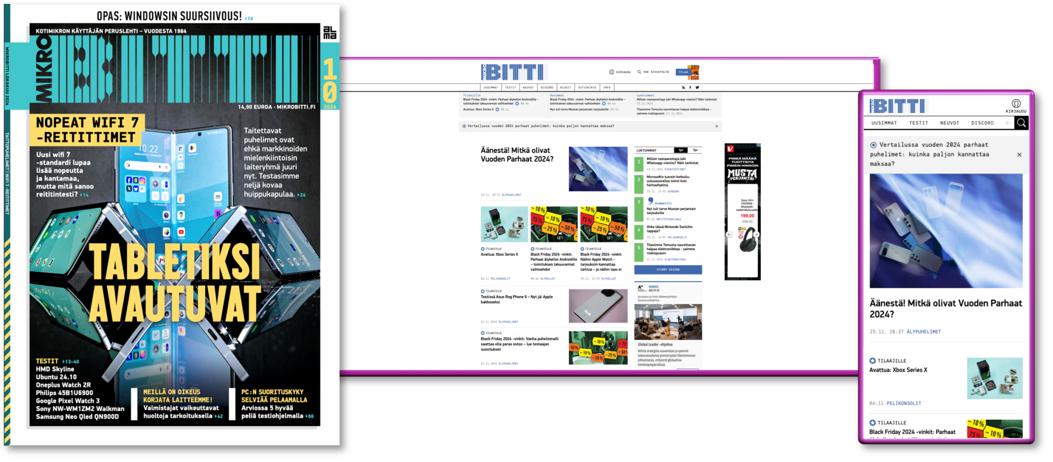 Mikrobitti is a magazine dedicated to information technology, providing readers with in-depth insights into devices, services, and trends. As Finland’s largest magazine in the field, it tests and compares the most intriguing products, reports on the latest technical innovations, and monitors industry services.