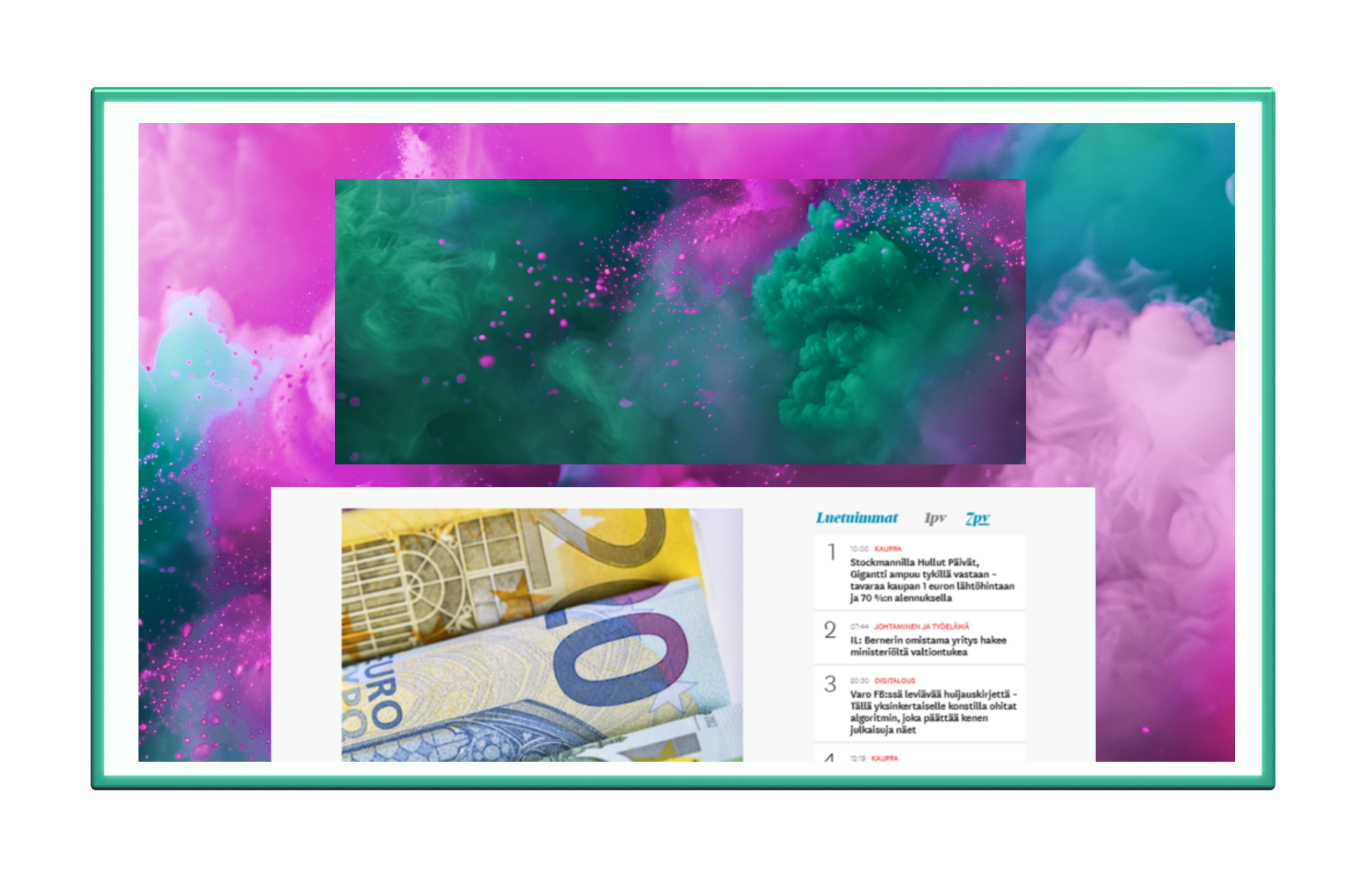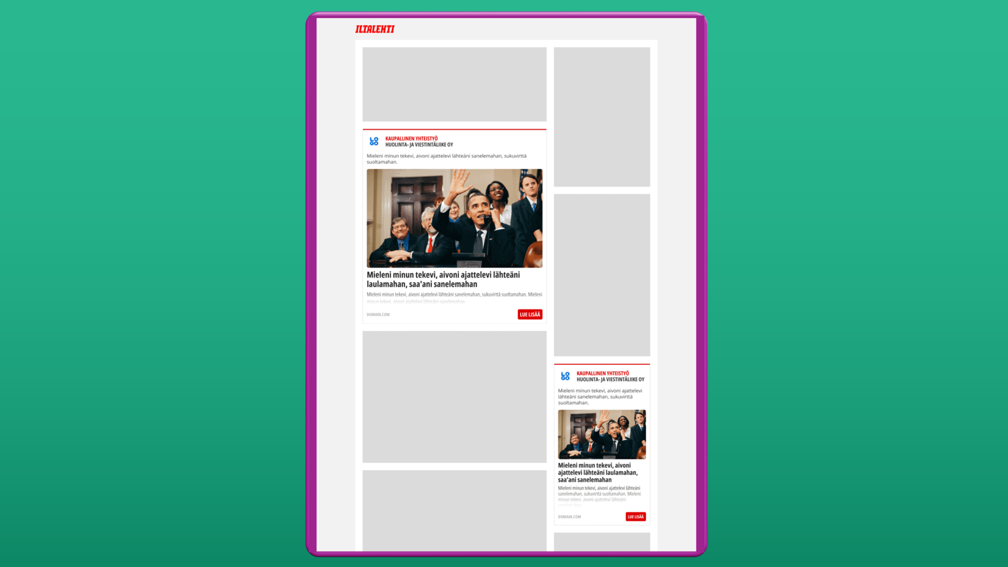 Sisällön sekaan sulautuva mainosmuoto, joka ohjaa käyttäjän omaan artikkeliin.