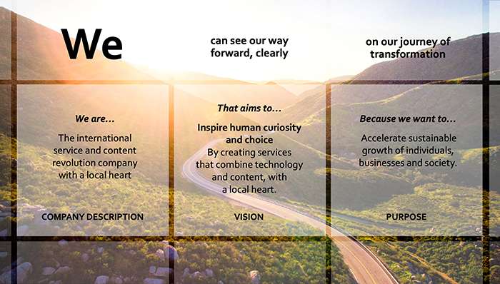 Siksi me haluamme vaalia ihmisen luontaista uteliaisuutta, ja olla apuna elämän eri valinnoissa. Teemme sen tuomalla itse kullekin merkityksellisimmät sisällöt ja palvelut käden ulottuville, viimeisimmän teknologian avulla.